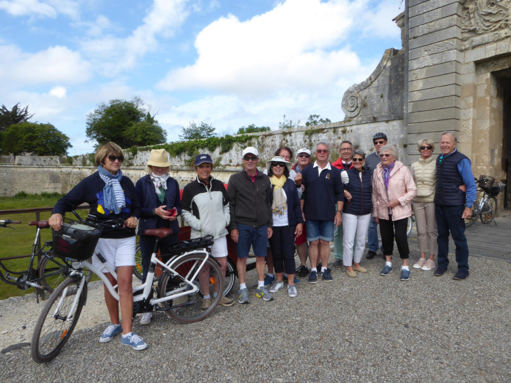 17 cyclistes, hommes et femmes, se sont regroupés, à la porte de Thoiras, puis à La Flotte, afin de répondre à l’initiative de Valentine et de Jean. L’objectif était de rejoindre le port du Plomb, par tous les moyens, bateaux, vélos, voitures …afin d’y prendre un bon repas en toute convivialité, au restaurant « La Passerelle ». C’est ainsi que 27 personnes se sont retrouvées à table après un apéro offert par le CNM.