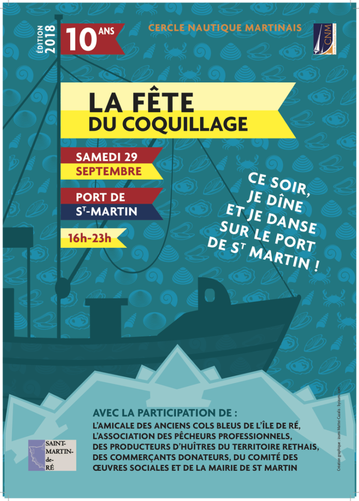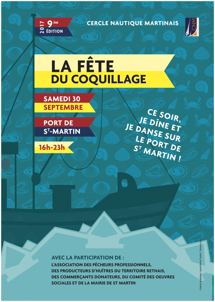 La Fête du Coquillage 2017, organisée par le Cercle Nautique Martinais, se déroulera autour du port de Saint Martin le samedi 30 septembre de 16h à 23h. Dîner et danse …